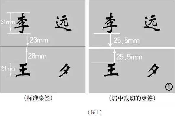 例如“李”和“王”两个姓,由于字高不同,到上、下裁切边的距离也应该不同。但如果这两个字出现在同一张纸上,从两字之间居中裁切,就会出现裁偏的情况,即使只相差两三毫米也显得很不美观(如图1)。