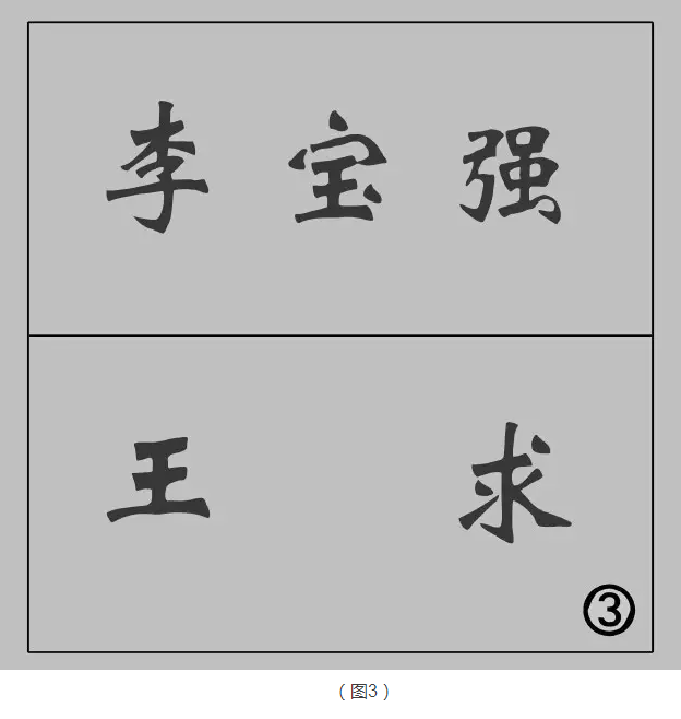 经过一段时间的摸索,我又想出了一个方法,做一个框,把姓名套进去然后找裁切点,这样上下左右的位置就能兼顾了(如图3)。但经过一段时间的实践,我发现每个人的经验不同,审美观也不一样,仍然有个别裁偏的情况发生。