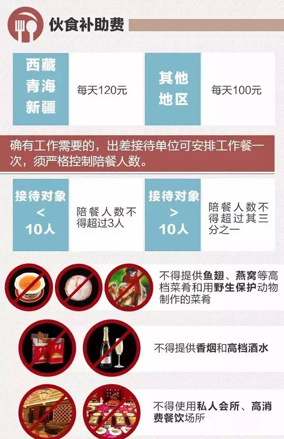 三、伙食费:每天补助100元,不能吃鱼翅燕窝等高档菜