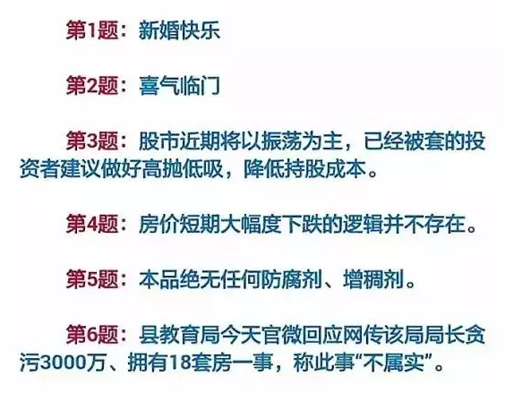 第6题:县教育局今天官微回应网传该局局长贪污3000万、拥有18套房一事,称此事“不属实”。