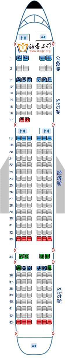 中国国际航空公司(国航)Boeing757T2 757 座位图