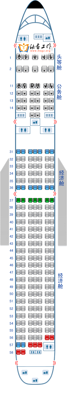 座位间距 座位宽度 座位类型 头等舱: 157.48CM 53.34CM 平躺座椅 公务舱: 106.68CM 48.26CM 活动躺椅 公务舱: 86.36CM 45.72CM \