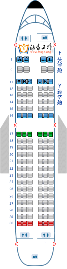 中国国际航空公司(国航)Airbus320T1 A320 座位图