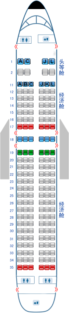 中国国际航空公司(国航)Airbus320T2 A320 座位图