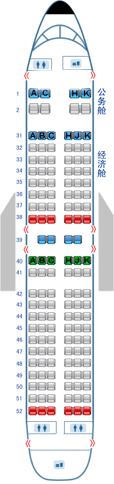 中国国际航空公司(国航)Airbus330T3 A330 座位图