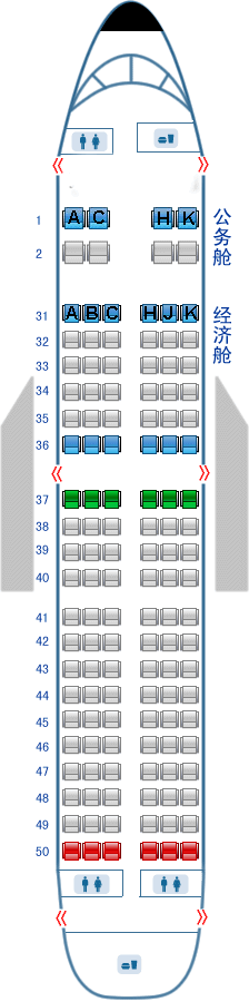 中国南方航空公司(南航)Airbus319T2 A319 座位图