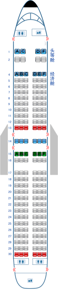 中国东方航空公司 Boeing737-800T2 7378 (东航)座位图
