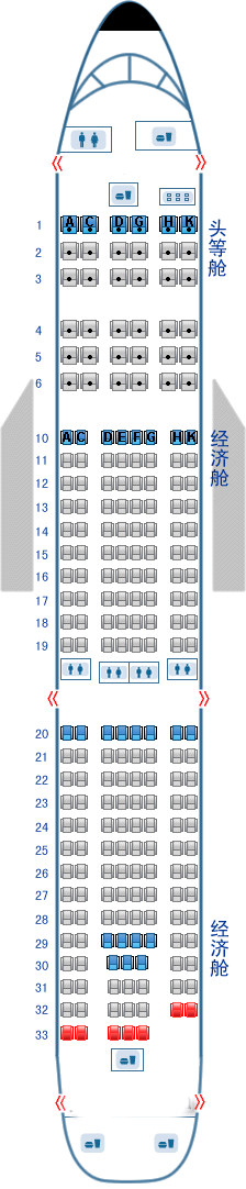 海南航空公司 Airbus330 A330 (海航)座位图