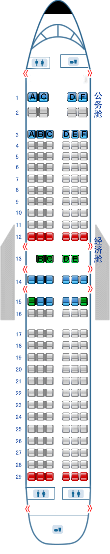 深圳航空公司 Boeing737-800T2 7378 (深航)座位图