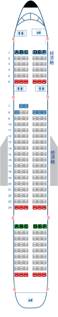 厦门航空公司 Boeing757-200T2 7572 (厦航)座位图