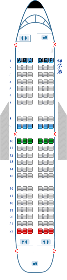 四川航空公司 Airbus319T2 A319 (川航)座位图