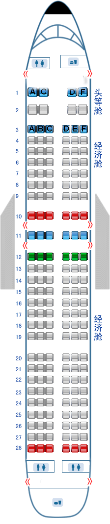 四川航空公司 Airbus320T1 A320 (川航)座位图