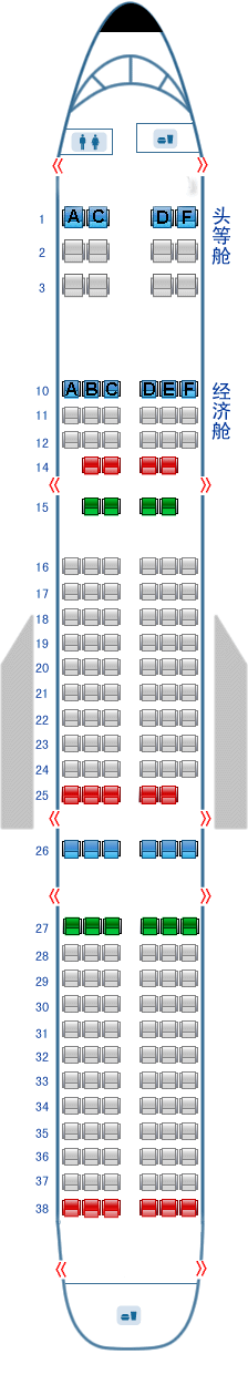四川航空公司 Airbus321-200T2 A3212 (川航)座位图