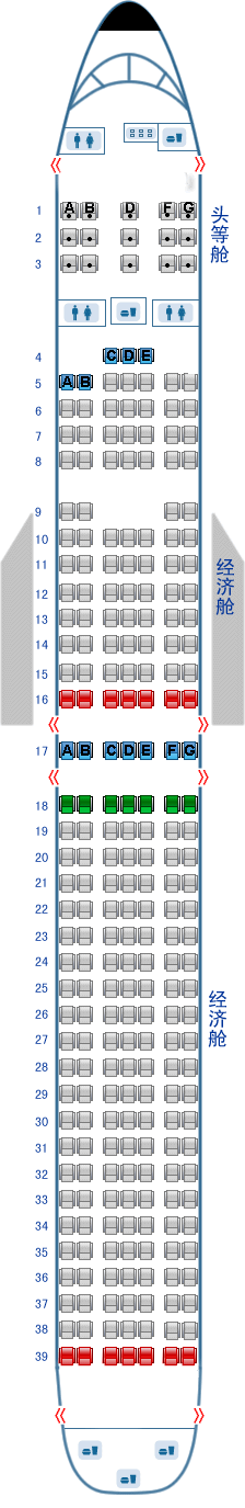 上海航空公司 Boeing767-300T1 7673 (上海航空)座位图