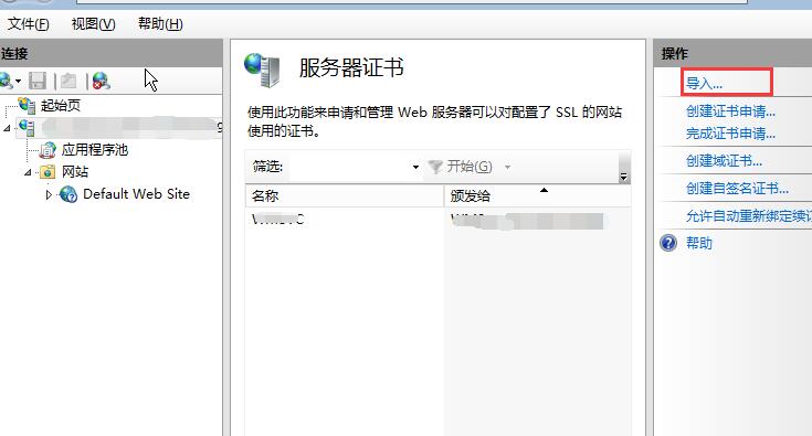 打开IIS服务管理器,点击计算机名称,双击‘服务器证书。