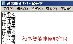 打开一个记事本(txt文件),按照排座人员的级别或您的要求把参加会议人员的姓名按照顺序依次录入。录入时必须是一个姓名一行,不得在一个姓名后接着录入,或者空格后再录入。保存待用。如图: