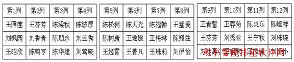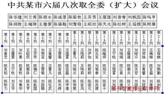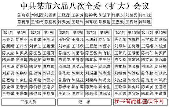 (六)如果一次会议邀请了老领导、老同志或不相隶属关系的单位领导参加会议,又和本次会议代表不好一并排列,可能会考虑在第一排或第二排的中间或一边集中排座。那么在输入人员名单时,就从排列这批人员的第一人起,隔一人输入一人,这样在自动排列后,这批人就坐在一起了。