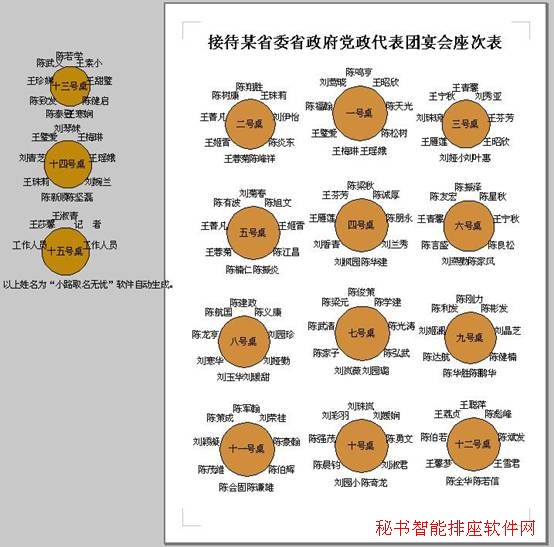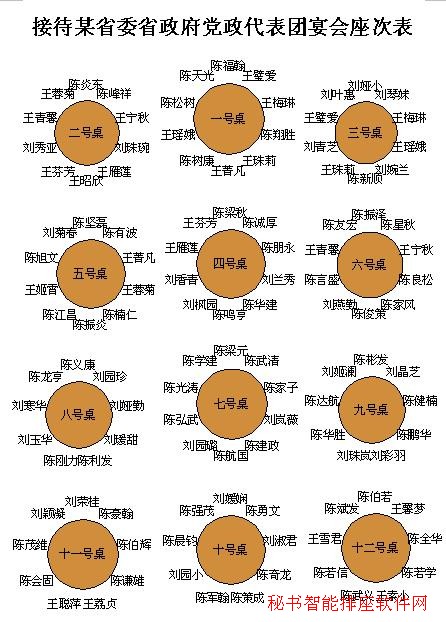 一是圆桌或椭圆桌双方对面座的座谈会议形式,可根据您准备人员名单的顺序先设置任何一边,再设置另一边,导入人员名单即可。