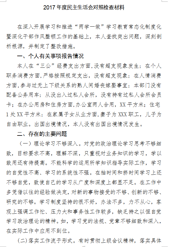 3.2017年度民主生活会对照检查(一)