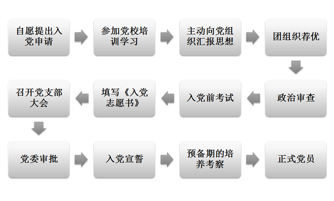 (范文来源于文秘家园网站)将入党程序汇总制作成入党流程图,这样更能清晰的浏览和记住入党的基本程序,从根本上减少了入党过程中的麻烦,大家也可以将入党流程图收藏起来,方便以后的使用。