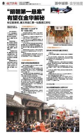 “根据现在的史料,说建文帝在火中丧生是证据不足的。”浙江师范大学人文学院历史系硕士生导师龚剑锋说。