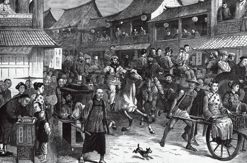 19世纪60年代,西洋画刊上绘制的华洋杂处的上海街景