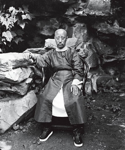 1871年,恭亲王奕摄于恭王府花园蝠厅前邀月台假山边