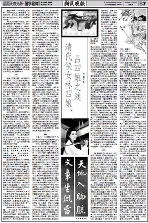 本文来源:《新民晚报》2010年11月7日第B7版,作者:陈云发,原题:《清代侠女林四娘、吕四娘之谜》