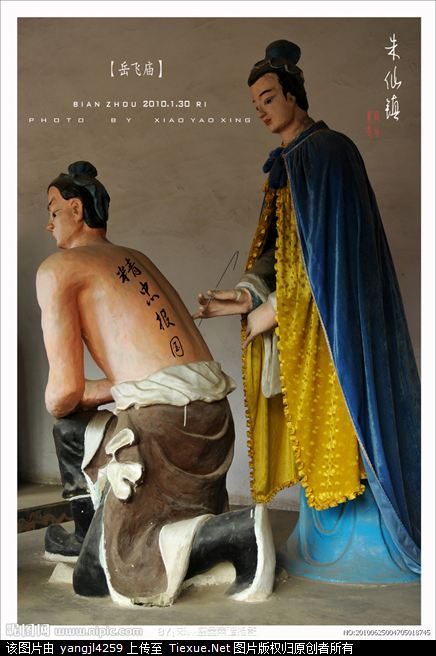 相传,岳飞出生时,有一只大禽“飞鸣室上”,所以,岳飞的字“鹏举”就是这么得来的。有道是:自古英雄多磨难。就在岳飞出生还未满月时,他家那里因黄河决堤发生水灾,洪水到来时,正在坐月子的母亲姚氏紧紧抱着他坐到一口大瓮中,最后被洪水冲到岸上侥幸活了下来。