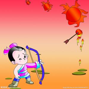 后羿是一个著名的弓箭手,他的射箭是百发百中的。有一个神话,说古时候天空里本来有十个太阳,地面上热得像烤焦似的,给庄稼带来严重的灾害。大家请后羿想法子,后羿拈弓搭箭,“嗖嗖”地几下,把天空里的九个太阳射了下来,只留下一个太阳。这样,地面上气候适宜,不再闹干旱了。又说,古时候大河里有许多怪兽,经常兴风作浪,造成水灾,把禾苗淹没,人畜淹死,也是后羿用箭把这些怪兽都射死了,人们的生活才恢复了正常。这些神话说明后羿的箭术很高明,是大家公认的。