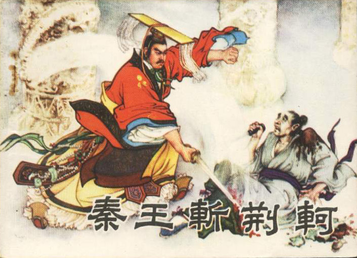荆轲拿来地图之后捧着,打开地图,地图全部展开后露出了匕首。荆轲乘机抓住了秦王的袖子,右手拿着匕首去刺秦王。没有刺到,秦王非常吃惊,耸身站了起来,挣断衣袖。拔剑,但剑太长,于是拿起剑鞘。当时非常危急,剑插得太紧,没办法抽出来。