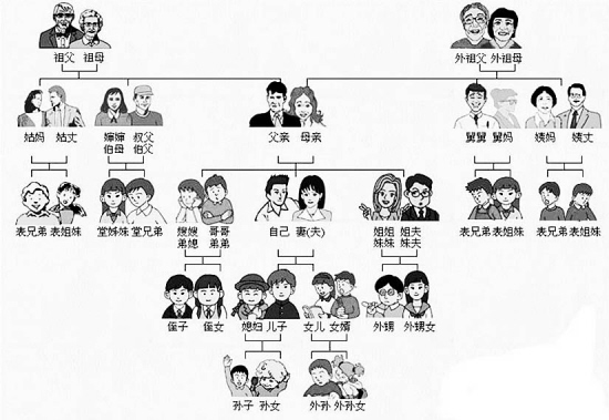 ⑹姨父:对姨母之夫称为“姨夫”或“姨父”。姨母之子女也称“表兄弟”、“表姊妹”。
