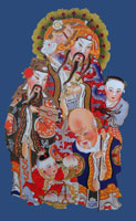 在节日的欢乐气氛中,赐福的天官终于降下凡尘。过去他是高坐在庙宇中的威严天官,接受帝王虔诚的供奉。现在他是装束富贵华丽,和颜悦色的福星;无论是逢年过节,红白喜事,福星往往粉墨登场,殷勤地为观众送来好运和福气。
