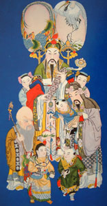 古人认为浩渺无际的星空是众神的居所,每一点星光都是一位星辰之神。星辰之神虽然远在天边,遥不可及,却被认为是地上万物的主宰。起初人们把天上星辰想象成恐怖的怪兽模样。道教兴起,他们也被晋升官职,统称为星官。其中有三位星官的职责最为重要:他们分别是专门赐予福气好运的福星,负责加官晋爵的禄星,保佑人们长生不老的寿星。三位合称福禄寿三星。
