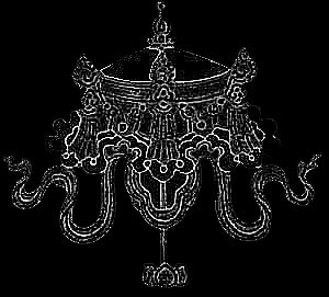 宝伞,亦称华盖,八吉祥徽中的宝伞与民间的雨伞、阳伞形状不同,释迦牟尼佛成道后,为众弟子讲经说法,梵天等拿一把饰有绸缎、宝珠的金柄白伞为佛遮阳,并献给佛祖。从此,这种伞成为活佛、上师、大喇嘛的专用工具,同时也赋予了新的含义,即宝伞标志着消除众生的贪、瞋、痴、慢、疑五毒,护佑佛法不被周围的恶气所玷污。