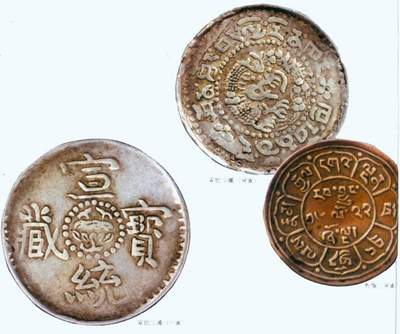 大致从19世纪40年初起,旧西藏地方政府开始大量铸造全部文字为藏文的章卡币。为了照顾西藏百姓业已形成的习俗,又必须再次重申和强调皇权思想和清王朝的权威,将“宣统元年”的藏文译文也铸造在藏币上面。