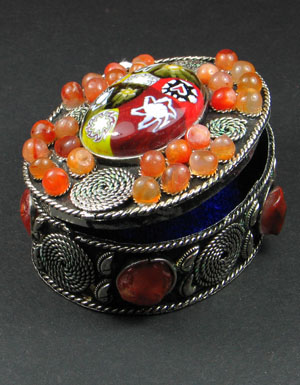 首饰盒上镶嵌了很多的珍贵玛瑙,使得此款首饰盒的精美程度在同类中出类拔萃。