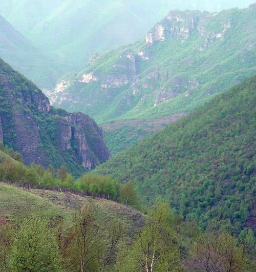 去五台山的那天,正好是阴天,间或洒点细雨,令人神清气爽。我们乘车4个多小时来到山脚,缓缓驶向山里。