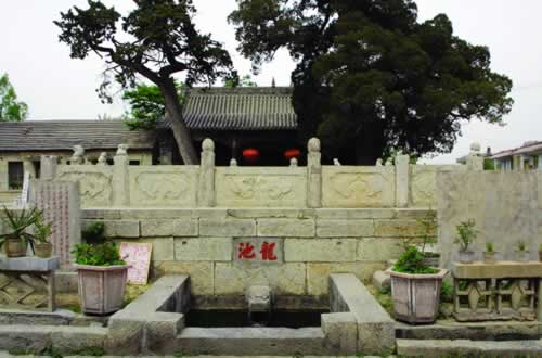 现在人们看到的洪范池系明代建筑。池周筑以护身石栏,由栏板和立柱扣结而成。柱头立雕石狮、盖钮等饰物,栏板浮雕花卉,池底有一镇海猴。池南侧外壁上,有一青石雕刻的龙头,从池壁探出,水从龙嘴中喷珠泄玉。龙头正上方镌有清著名书法家秦维翰所题“龙池”两字。池水围绕洪范池一周,缓流而去。