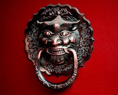 这是北京市魏染胡同一户居民家门上的“椒图”(11月10日摄)。