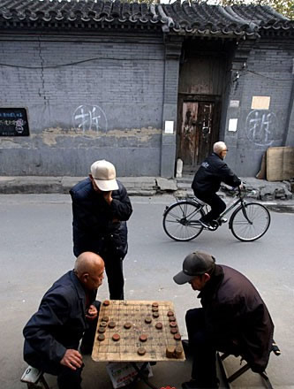 11月11日,几位居民在北京市前孙公园胡同下象棋。