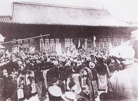 抗日战争爆发后,“临时政府”旧址又成了日本侵略军的司令部,大战犯冈村宁次就住在这里。1940年秋,日本天皇派两名特使来到北平视察,他们住在铁狮子胡同日军司令部附近的一个很讲究的小院内。两人时常骑马外出,在胡同里目中无人地遛达。为了抗击日本帝国主义反动统治,抗日勇士马汉三和麻景贤于11月29日,在离铁狮子胡同不远的锣鼓巷南口,开枪将一名日本特使击毙,打击了日本侵略军在北平的嚣张气焰。