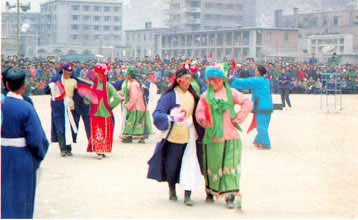 流传于洛川县京兆乡、城关镇及黄陵、富县等地的秧歌,是一种不同于陕北大秧歌的古老传统形式,当地群众称之为“老秧歌”。