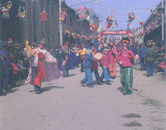 老秧歌是春节闹杜火时常见的形式。正如秧歌中唱的那样:“过了一年又一年,村村秧歌闹得欢,虽说秧歌不好看,敲锣打鼓太平年。”这些唱词生动形象地描绘了当地群众把秧歌活动作为欢度春节、喜庆丰收时,抒发人们喜悦心情不可缺少的一项活动。