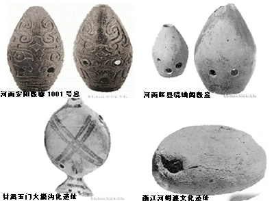 (左下)埙(甘肃玉门火烧沟化遗址)
