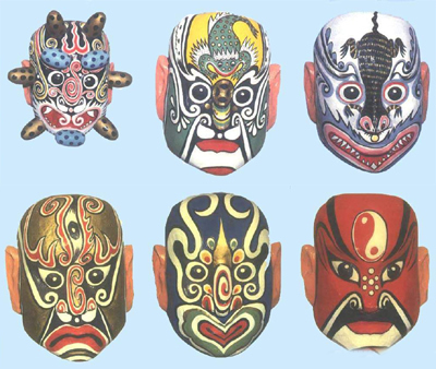 脸谱是传统戏曲中演员面部化妆的一种程式,主要用于净角。这种艺术可追溯到古代的技舞和唐朝的代面,而且保留了不少远古的神话人物形象。大量表现神灵精怪及历史传说人物脸谱图案,奇瑰传神,变化多端,效果强烈。各种人物大都有特定的谱式和色彩,达到“人可以相貌”、“知人知面就知心”的艺术效果。它与远古时的图腾崇拜、原始歌舞也有着渊源关系。早在商周时期宫廷里就有了逐鬼的祭祀仪式,周代称为“大傩”、“驱傩”,后这种驱傩传入民间,逐渐演变为祭神、娱神、迎神的赛会,并加进杂戏表演。这种古老的习俗沿袭至今,每年正月初一到十五,陕西等地都要举行丰富多彩、名称不同的社火活动。
