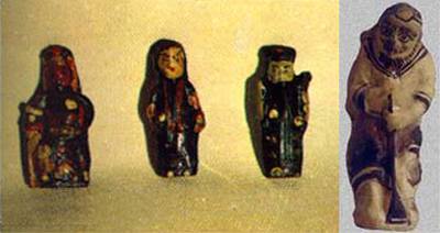 文章配图其一为铁拐李造型的陶哨。毛胡瞪目,持拐,身背葫芦。造型拙朴,描绘粗略,甚为古朴,已很少见。