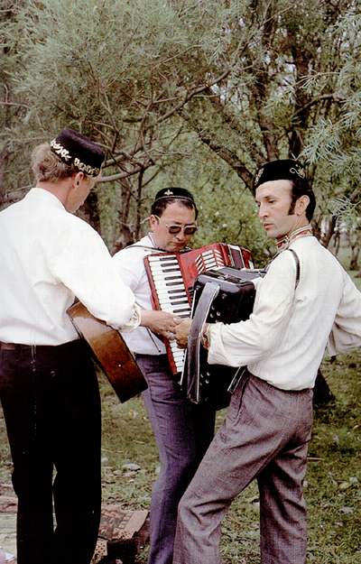 塔塔尔族青年拉起了手风琴