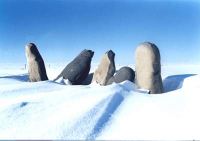其中最典型的是刻有图案化鹿纹样的,所谓的图案主要表现在鹿嘴雕刻成鸟喙状,鹿的头也有些像鸟首,可以说是一种鸟首鹿身的动物。这些鹿石碑体修整很规范,在×发现的碑石主要是刀形和方柱形。关于鹿石,有神秘学研究者认为,它是图腾柱,始祖祭祀柱和神人拴马桩,有人则认为它是世界山、世界树和男根。