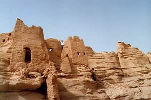 艾斯克霞尔古城堡位于五堡西南23公里的东魔鬼城中,地理坐标东经92°35′12″,北纬42°44′19″,海拔350米,艾斯克霞尔系维语“破旧的古城”之意。